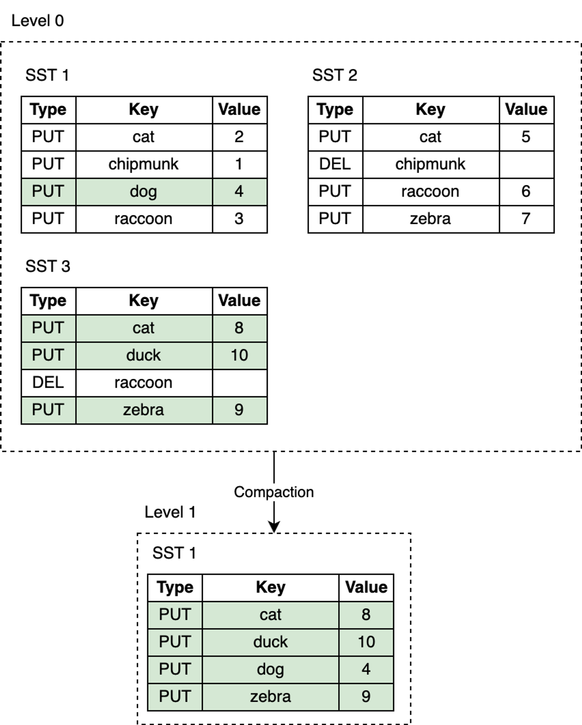 在存在持续写入的情况下,需要进行compactions以提高空间效率、读取(查询)效率和及时删除数据。Compaction会删除已删除或覆盖的键值,并重新组织数据以提高查询效率。如果配置的话,Compactions 可能会在多个线程中同时进行。